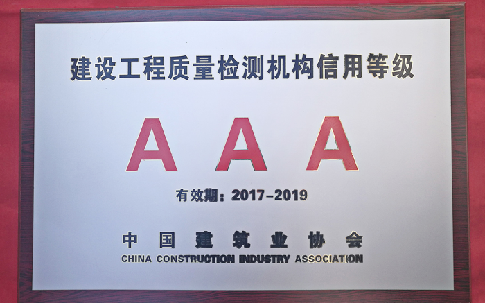 根據(jù)中國(guó)建筑業(yè)協(xié)會(huì)工程建設(shè)質(zhì)量監(jiān)督與檢測(cè)分會(huì)的文件精神和要求,經(jīng)各省建設(shè)行政管理部門和行業(yè)協(xié)會(huì)的推薦,通過(guò)專家評(píng)價(jià)組評(píng)價(jià)和網(wǎng)上公示,我公司被中國(guó)建筑業(yè)協(xié)會(huì)工程建設(shè)質(zhì)量監(jiān)督與檢測(cè)分會(huì)確定為2017-2019年度全國(guó)建設(shè)工程質(zhì)量檢測(cè)AAA級(jí)信用機(jī)構(gòu)。