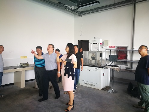 評審員在張子偉總經(jīng)理和朱鴻飛總工的陪同下觀看實驗室。