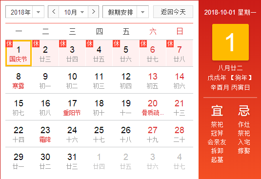10月1日至7日放假調(diào)休,共7天。9月29日(星期六)、9月30日(星期日)上班。
