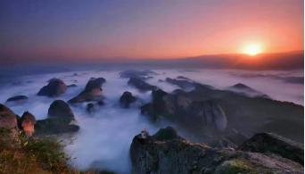 崀山二絕—八角寨:主峰818米、平地拔起、鶴立雞群、斜伸八個翹角而得名。主要景點有八角寨、龍門、仙掌石、老人流淚、云臺寺、龍頭神香、聚仙臺、鯨魚鬧海、群螺觀天、神斧降龍、仙人下棋、天門中開、藥王殿等。從山底仰望八角寨,山石高聳入云,山頂分八角伸出,又稱八個龍頭。走貼壁懸空、移步換景的高空棧道,觀三羊開泰、掌石、偉人睡像、臺灣石等系列象形景觀,感受一腳跨兩省的奇跡,登臨八角寨頂,俯視鯨魚鬧海大峽谷絕景群。