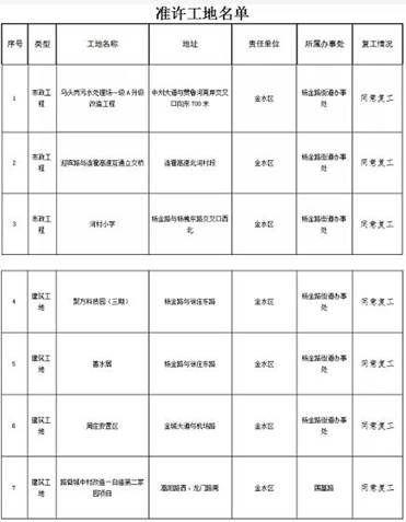 上述公示中的910家工地,在申請(qǐng)復(fù)工手續(xù)未批復(fù)之前,不允許動(dòng)工。另有27家企業(yè)允許復(fù)工,部分名單如下: