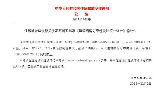 摘要:住房城鄉(xiāng)建設(shè)部發(fā)布了國(guó)家標(biāo)準(zhǔn)《建筑結(jié)構(gòu)可靠性設(shè)計(jì)統(tǒng)一標(biāo)準(zhǔn)》,編號(hào)為GB50068-2018,自2019年4月1日起實(shí)施。巨變!分項(xiàng)系數(shù)提高:恒1.3,活1.5!2019年4月1日起執(zhí)行!