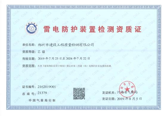 公司取得雷電防護裝置檢測和建筑幕墻工程檢測資質