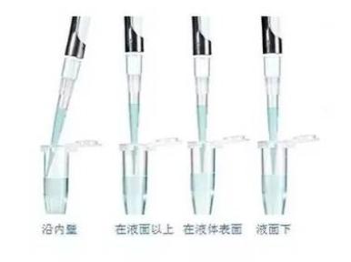 勻速連貫移液,控制好移液速度,太快會(huì)造成噴液,液體或者氣霧沖入移液器內(nèi)部,污染活塞等部件。