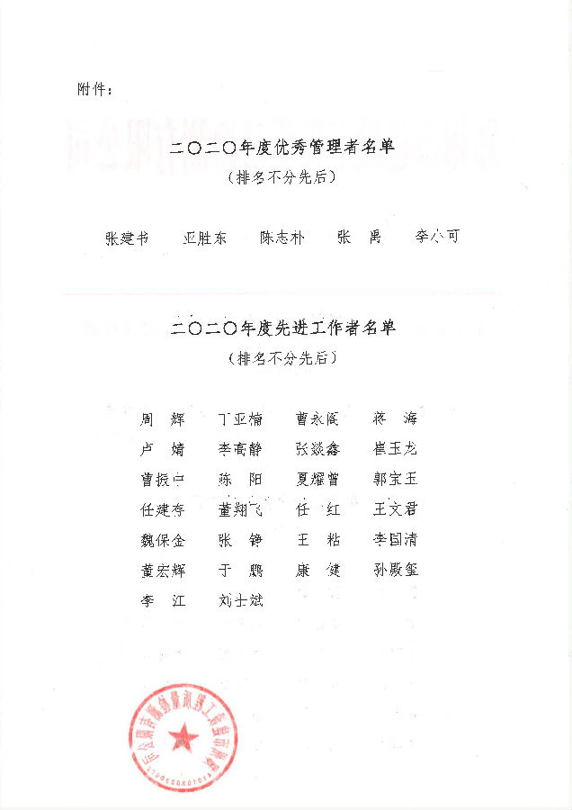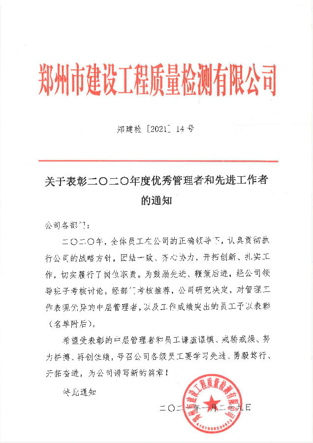 關(guān)于表彰二0二0年度優(yōu)秀管理者和先進(jìn)工作者的通知
