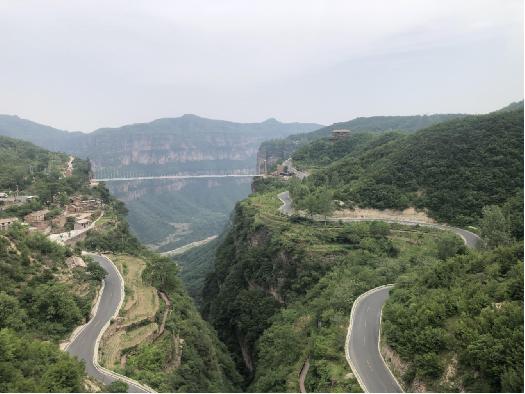 相對于第一天太行之魂王相巖的險峻,第二天桃花谷的旅途就十分輕松愜意,雖然由于是夏天,未能欣賞到三九嚴(yán)寒桃花開的桃花谷美景,但是夏日中的桃花谷顯得更加的潭深谷幽,仿佛屏蔽了城市的浮塵喧鬧,讓大家的心靈也隨之安靜下來。桃花谷游覽結(jié)束后就來到了本次太行之行的最后一站:天路,隨著觀光車在盤旋山路上的馳騁,大家的心情也隨之放飛。